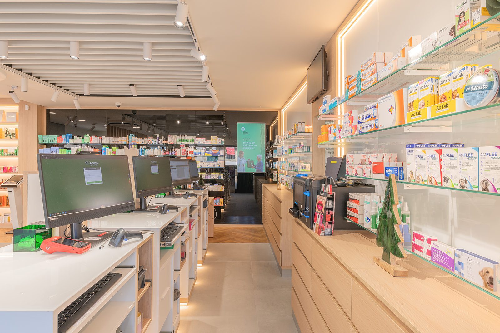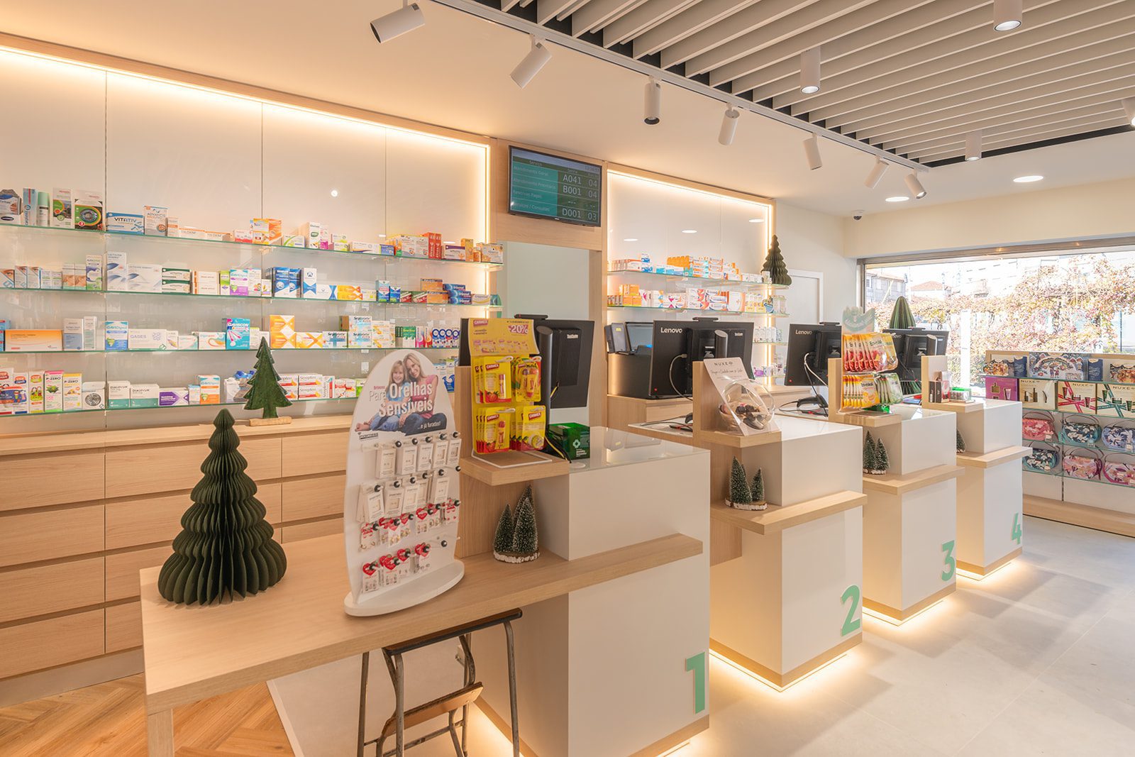 Mais do que uma atualização estética, esta intervenção redesenhou a forma como a farmácia funciona no dia a dia: melhor circulação, atendimento mais fluido, zonas comerciais mais estratégicas e um ambiente moderno, preparado para as exigências atuais do setor farmacêutico.